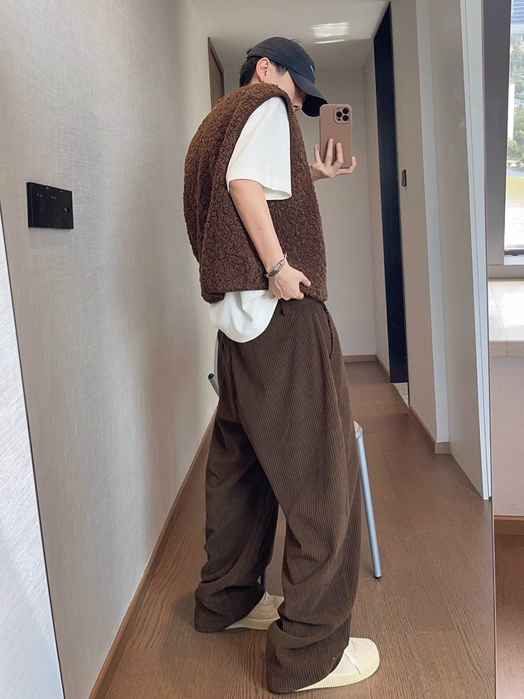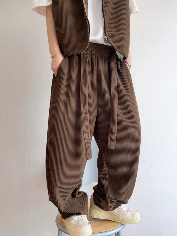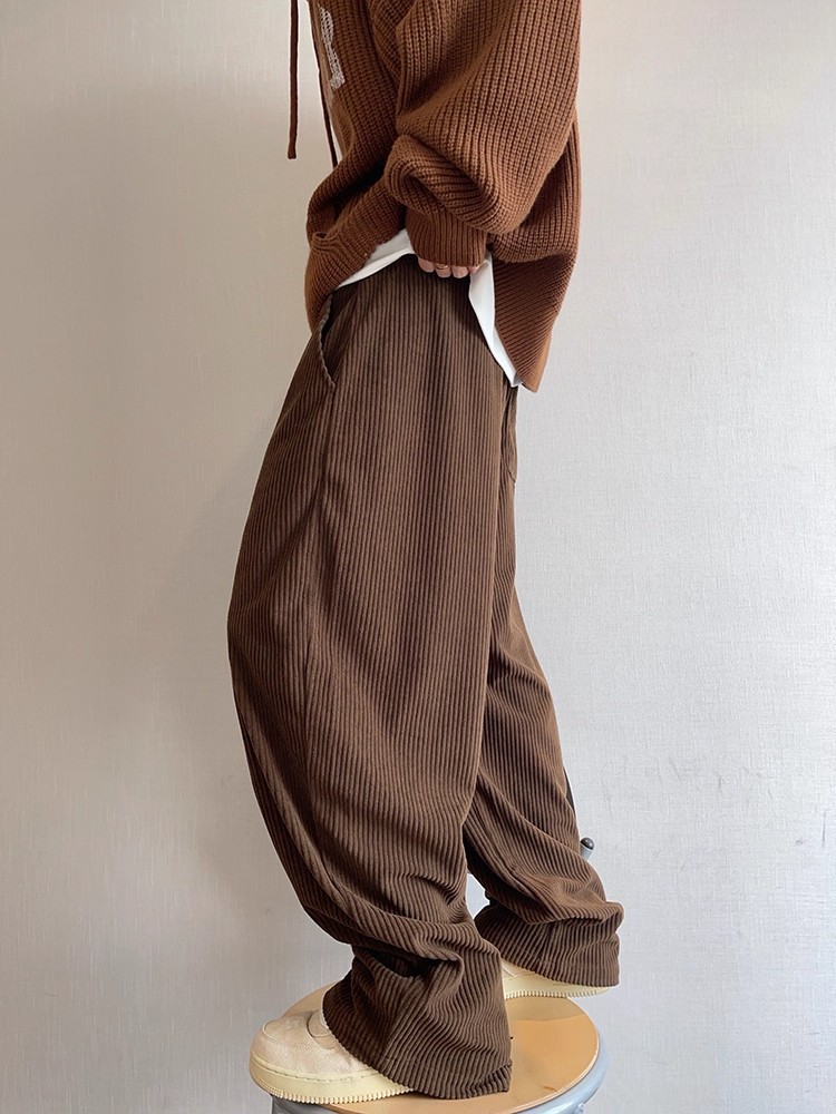 Retro Wide-striped Drapey Corduroy Casual Pants